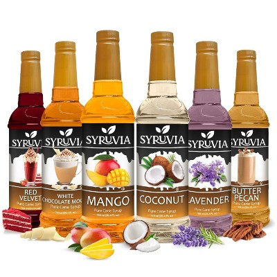 Syruvia Coffee Flavors Variety Pack: Red Velvet, White Chocolate Mocha, Mango, Coconut, Lavender & Butter Pecan 25.4 fl oz Syrup