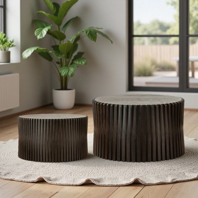 38.97" Wood Relief Round Pedestal Coffee Table (No Assembly)