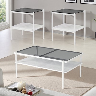 3-Piece Gray Glass Coffee Table Set