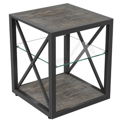 Lyngins 2-Tier Square Coffee Table,Modern Side Table with LED Lights for Living Room,Offices