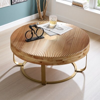 Wood Relief Round Coffee Table (Small-Space, No Assembly)