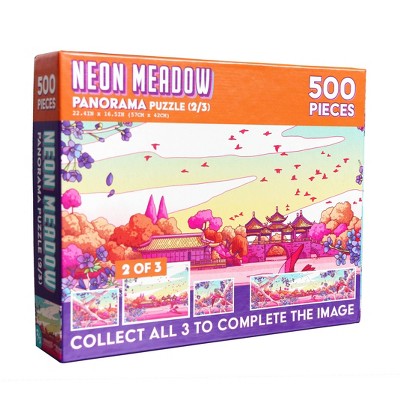 de.bored Neon Meadow 2 of 3 Panorama Puzzle - 500pc: Nature Paper Jigsaw Collection, Enhances Memory Skills