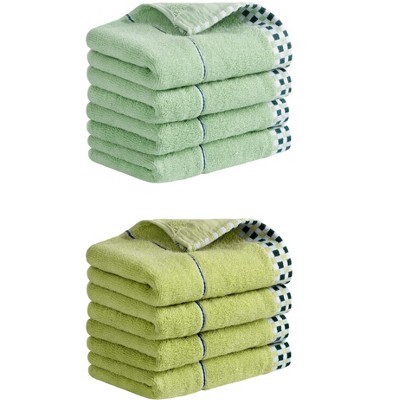 REGALWOVEN Striped Checked Print Absorbent Soft Decorative Hand Towel 14" x 30"