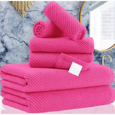 Hot Pink Towels - 100 Cotton, Soft, Quick Dry, Lightweight Set of 6