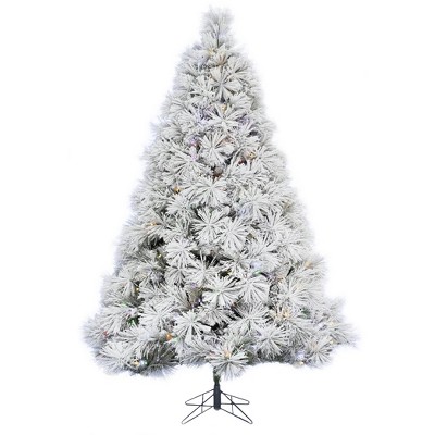 Perfect Holiday 5' Prelit Atka Pine Flocked 500 Tip Christmas Tree Dia 41" with Metal Stand - Multi