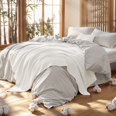 5Pcs Comforter Set, Farmhouse Solid Bedding Set, Cotton Bed Comforter