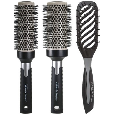 Conair Ceramic Tools Large Round Brush 2½" with Conair Ceramic Tools Medium Round Brush 2" and Conair Vented Brush