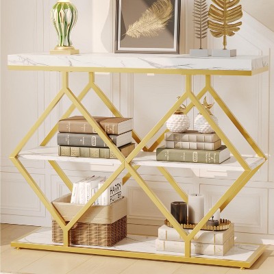 3-Tier Industrial Entryway Table with Storage, Console Sofa Table with Open Shelves, Metal Frame