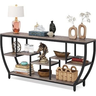 Lantine 62.99-Inch Wooden Console Table with 6 Storage Cubes