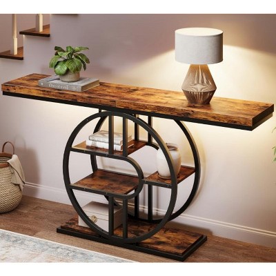 Industrial Entryway Table with Oval-Shaped Metal Frame & Adjustable Feet, 39" Sofa Console Table