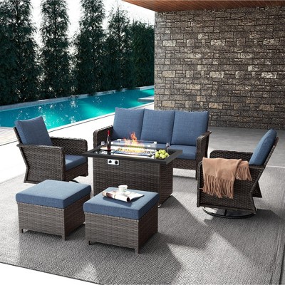 If you love the idea of a centerpiece for evening gatherings, consider patio conversation sets with fire pit tables. These combine cozy seating with a functional fire element, creating a warm and stylish hub for roasting marshmallows or sipping cocktails under the stars. For added movement and comfort, swivel chairs or rocking chairs are a modern favorite, blending relaxation with convenience.