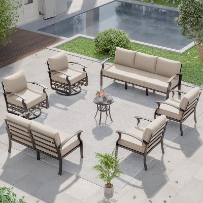 Size is another key factor when selecting the right set. 3-piece patio conversation sets are perfect for balconies or small patios, offering a simple yet stylish seating option. For mid-sized spaces, 5-piece outdoor conversation sets strike the right balance between space-saving and accommodating guests. Larger patios or backyards can host 7-piece patio furniture sets, providing plenty of seating for family gatherings and parties.