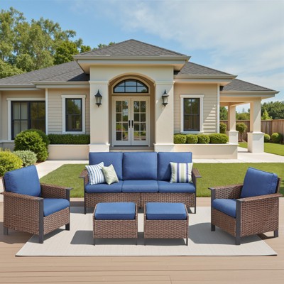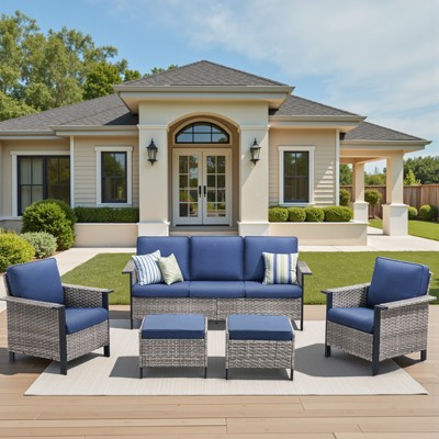UPTIOT 5-Piece Steel Wicker Patio Conversation