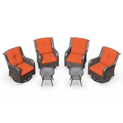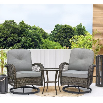 If you love the idea of a centerpiece for evening gatherings, consider patio conversation sets with fire pit tables. These combine cozy seating with a functional fire element, creating a warm and stylish hub for roasting marshmallows or sipping cocktails under the stars. For added movement and comfort, swivel chairs or rocking chairs are a modern favorite, blending relaxation with convenience.