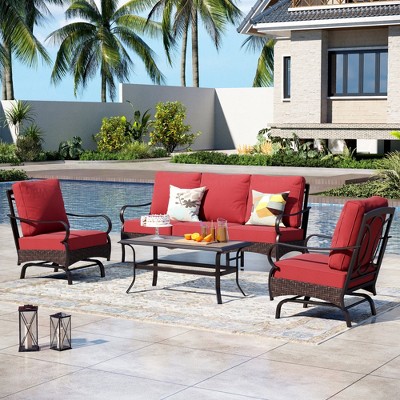 GDFStudio Elton Patio 4 pcs Steel and Rattan Conversation Set