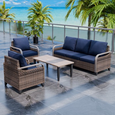 Selby 3-Piece Modern Coastal Faux Wicker Conversation Outdoor Patio Set - JONATHAN Y