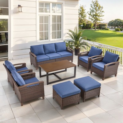 - 7-piece wicker outdoor sectional set with cushion navy blue