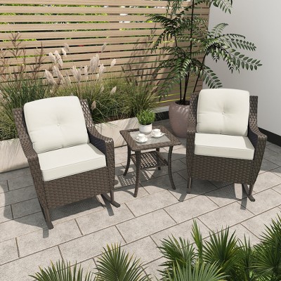 If you love the idea of a centerpiece for evening gatherings, consider patio conversation sets with fire pit tables. These combine cozy seating with a functional fire element, creating a warm and stylish hub for roasting marshmallows or sipping cocktails under the stars. For added movement and comfort, swivel chairs or rocking chairs are a modern favorite, blending relaxation with convenience.