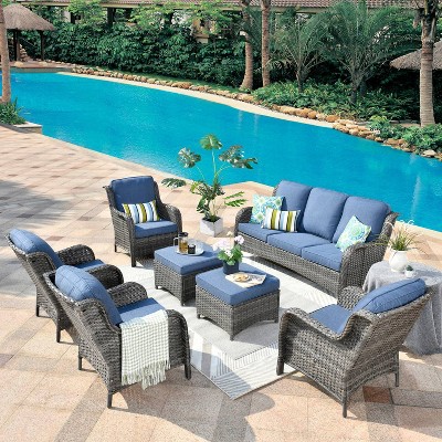 - 7-piece wicker outdoor sectional set with cushion navy blue