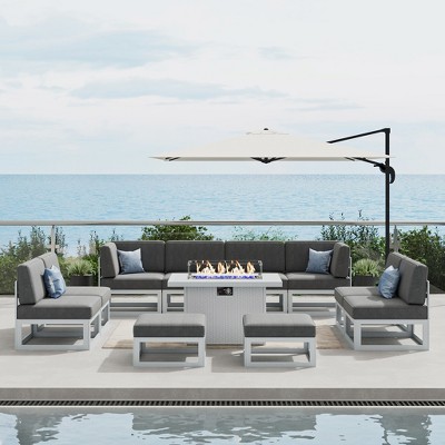 GDFStudio Crested Bay Outdoor Aluminum 4 Seater Chat Set with Light Gray Fire Pit