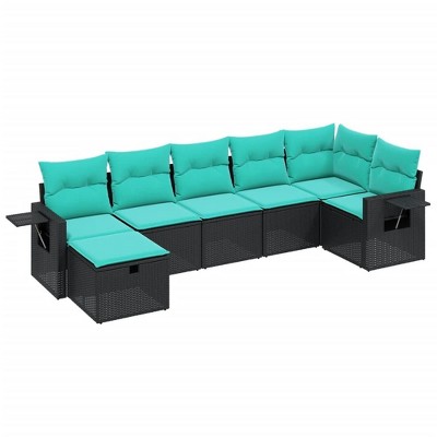 - 7-piece wicker outdoor sectional set with cushion navy blue
