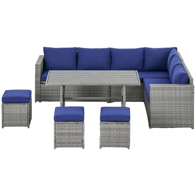 - 7-piece wicker outdoor sectional set with cushion navy blue