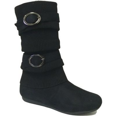 Women's Winter Boots Black Fashion Suede 10" Mid Calf Shearling Warm Fur Shoes