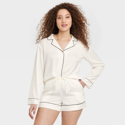 Women's Luxury Collection Shadow Striped Satin Notch Collar Top and Shorts Pajama Set - Auden™