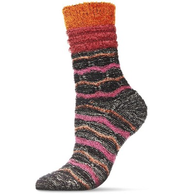 Memoi Women's Thick Chevronitty Cozy Crew Socks Black One Size