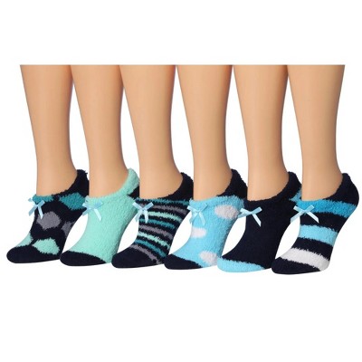 Tipi Toe Women's 6-Pairs Cozy Microfiber Anti-Skid Soft Geometric Striped Pattern Colored Fuzzy Ankle Slipper Socks