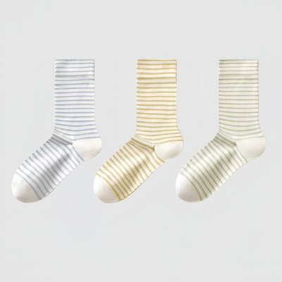Anna-Kaci Women's 3-Pair Striped Crew Socks Set Lightweight Knit with Soft Stretch and Modern Minimalist Style