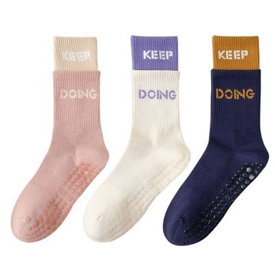 Anna-Kaci Women's 3-Pair Set Mid-Calf Grip Socks with Cushioned Soles and Motivational Text for Yoga Pilates Fitness