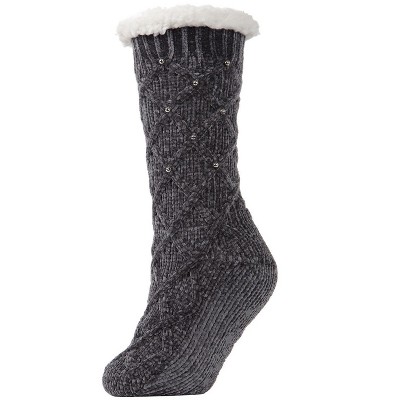 Memoi Women's Aztec Fair Isle Plush Cabin Socks Alloy 9-11
