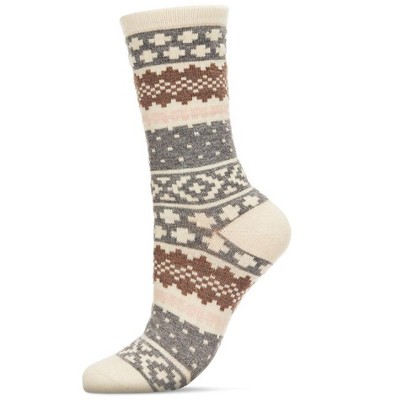 Memoi Women's Winter Fair Isle Cashmere Blend Crew Socks