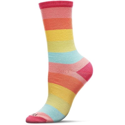 Memoi Multicolor Stripe Splash Bamboo Blend Crew Socks Pink 9-11