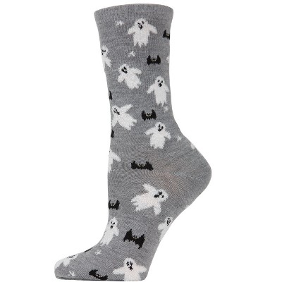 Memoi Flying Ghost & Fangtastic Bat Crew Socks Med Gray Heather 9-11