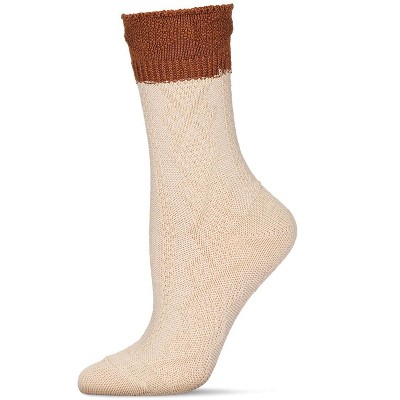 Memoi Women's Diamond Bits Soft-Fit Two-Tone Crew Sock