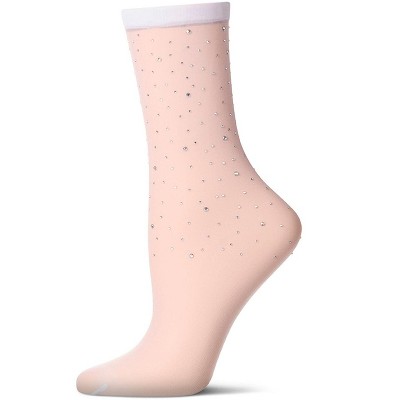 Memoi Women's All-Over Rhinestone Studded Sheer Crew Sock