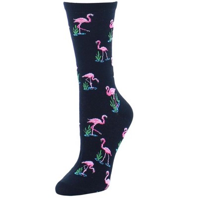 Memoi Feathered Frenzy Flamingo Bamboo Blend Crew Novelty Socks