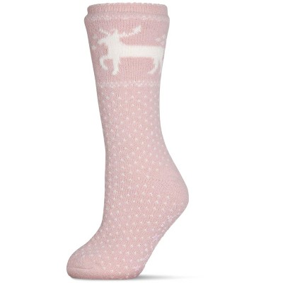 Memoi Women's Pretty Prancer Polka Dot Plush Lined Slipper Socks Pink 9-11