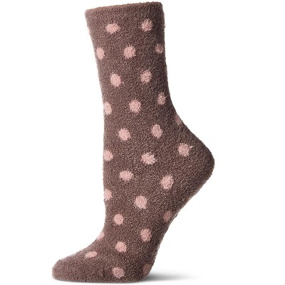 Memoi Women's Polka Dot Non-Skid Lavender Infused Crew-Length Cozy Spa Sock Stone 9-11