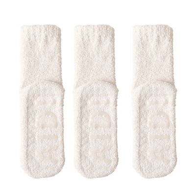 Anna-Kaci 3 Pairs Women's Plush Non-Slip Crew Socks with Thick Fleece Lining and Cozy Warm Fit