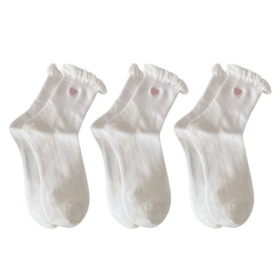 Anna-Kaci Women's 3-Pack Breathable Cotton Blend Socks with Ruffle Trim and Heart Embroidery