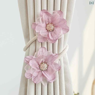 Unique Bargains Elastic Hook Single Flower Curtain Tieback Fabric 2 Pcs