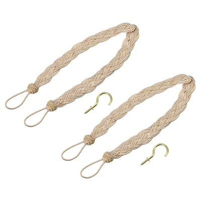 Unique Bargains Cotton Hand-Woven Decorative Metal Hook Curtain Drapes Holdbacks 23.6"