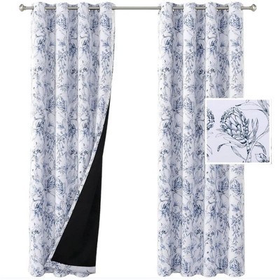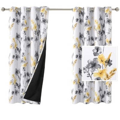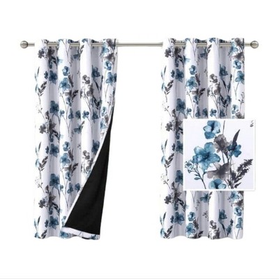 LISM Floral Printed Fabric Blackout Curtains,2 PCS