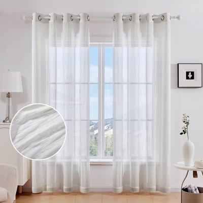 Pleated Linen Curtains Semi Sheer Light Filtering Pinch Pleat with Hooks and Rings,Back Tab Drapes,Set of 2