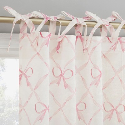 Sun Zero Romy Lattice Bow Sheer Tie Top Curtain Panel Pink