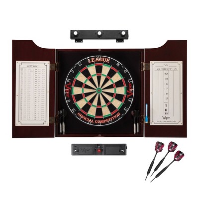 Viper Metropolitan Sisal Fiber Bristle Dartboard and Cabinet Bundle Standard Set - Mahogany
