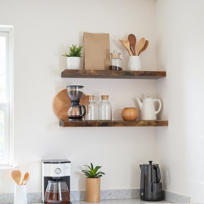 Wall shelves make empty walls and rooms look beautiful & decorated. They are a great way to showcase your favorite books, pictures, and knick-knacks. They make a house look like a home and give a cozy and cute feel to your home decor. A sturdy shelf keeps your treasured belongings safe and organized. A shelf is also a smart storage option for your home, as it holds many items but takes up less space. Target has a wide range of wall shelves, floating shelves, wall shelf sets, and other shelving options. Browse through a variety of shelves and shelving units in different sizes, materials, and types. You can find bracket shelves, corner shelves, cube shelves, floating shelves and, organizer shelves that are right for your space and storage needs. Look through wall shelves made of wood, metal, acrylic, and more. If you are looking for a sturdy wall-mounted wall shelf, choose from solid wood or metal options. Pick from wall shelving options for different areas of your home like the entryway, wall intersections, fireplace, kitchen, or even an empty corner. Find a wall shelf that will complement home decor be it modern, traditional, farmhouse, or bohemian. A wall shelf is a no brainer when it comes to functional home decor. Find the perfect one for your home at Target.